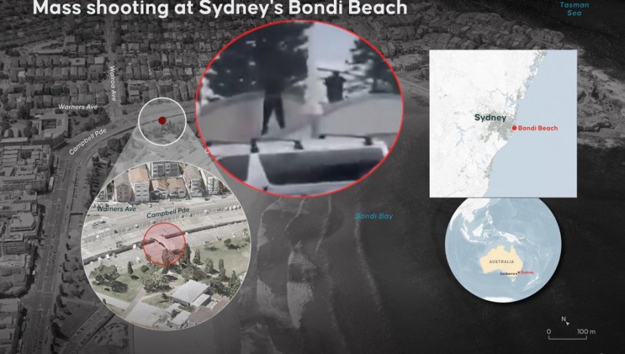Jedan građanin je tokom današnjeg terorističkog napada na plaži Bondi u Australiji oborio jednog od napadača i herojski mu oduzeo pištolj, prenosi Gardijan. Video sa lica mesta prikazuje navodnog napadača kako stoji na trotoaru između travnate površine i parkinga držeći oružje sa dugom cevi i puca u daljinu. Posmatrač, koji je čučao iza parkiranog automobila, […]