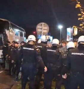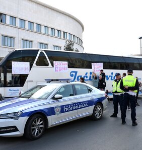 Narodni poslanik i predesnik Demokratske stranke (DS) Srđan Milivojević vezao se u znak protesta lisicama za autobus Milomira Jaćimovića koji se nalazio ispred zgrade Banovine, pre nego što ga je sa tog mesta pomerila policija.