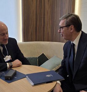 Predsednik Srbije Aleksandar Vučić se danas u Davosu, tokom Svetskog ekonomskog foruma, sastao s predsednikom Poljske Karolom Navrockim i predsednicom Evropske centralne banke Kristin Lagard.
