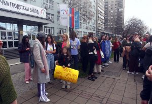 Ispred Republičkog geodetskog zavoda (RGZ) danas su se oko 14 sati, na poziv studenata Fakulteta političkih nauka, okupili studenti i građani kako bi podržali zaposlenu u RGZ Mariju Zarubicu koja je dobila rešenje o premeštaju iz Beograda u Inđiju.