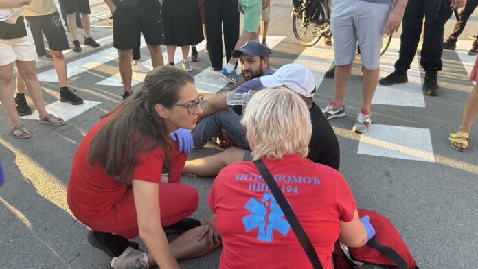 Zbog toga što je policija blokirala sve prilaze kružnom toku kod kafane Romansa na Matejevačkom putu, a propuštala sva vozila koja su dolazila iz pravca naplatne stanice Niš-istok, građani koji su blokirali taj kružni tok, simulirali su povrede na pešačkom prelazu i sprečili protok saobraćaja. Policija je pozvala Hitnu pomoć koja je građanima koji su […]