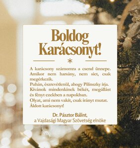 Pilinsky János versét idézte karácsonyi üdvözletében dr. Pásztor Bálint, a Vajdasági Magyar Szövetség elnöke. Szerző: Magyar Szó online