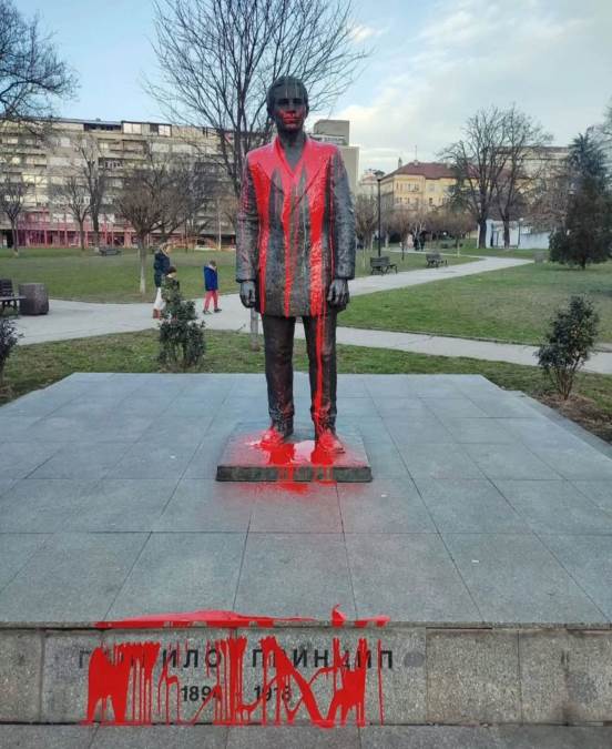 Oskrnavljen spomenik Gavrila Principa u Beogradu: Poliven crvenom bojom (Foto)