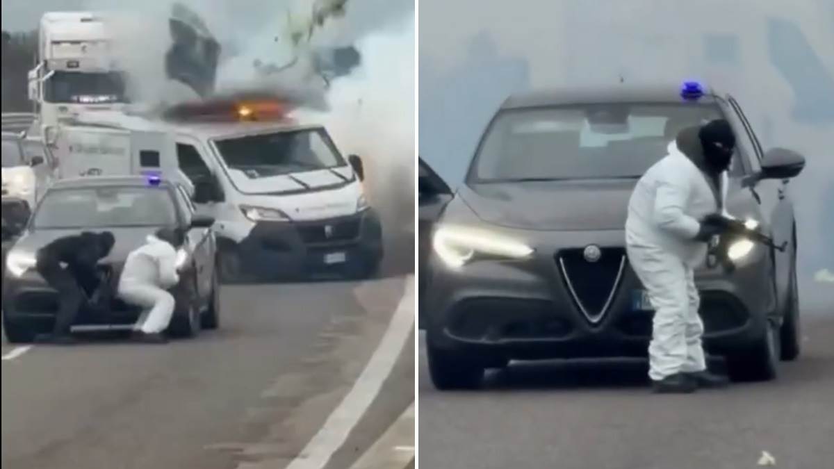Haos na auto-putu, filmske scene u Italiji: Pucali na policiju, hteli da opljačkaju kombi, pa ga digli u vazduh (Video)