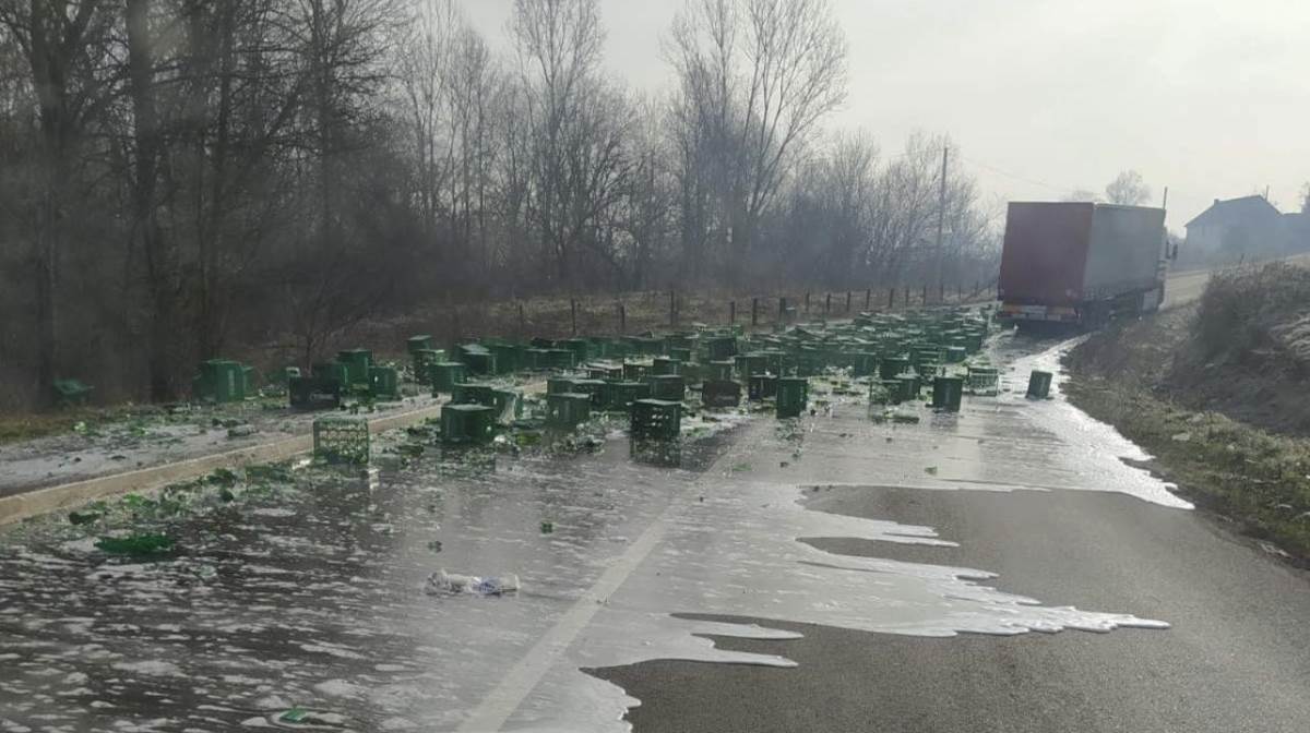 (Foto) Ko je rekao tura za sve? Reka piva na putu kod Čačka, gomila gajbica poispadala iz kamiona